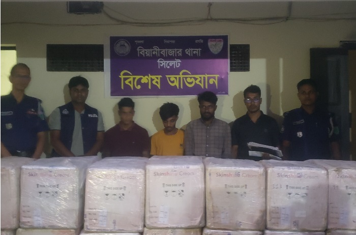 জানা যায়, শনিবার সকাল সাড়ে ৮ টার দিকে সীমান্তঘেঁষা জকিগঞ্জ-কানাইঘাট উপজেলা থেকে পাথরের আড়ালে ট্রাকভর্তি ভারতীয় অবৈধ কসমেটিকস পণ্য অন্যত্র নিয়ে যাওয়া হচ্ছে এমন খবর পেয়ে চারখাই এলাকায় তল্লাশি শুরু করে পুলিশ। একপর্যায়ে পাথর ও অবৈধ কসমেটিকস বোঝাই ট্রাকটি (নং-বগুড়া-ট ১১-২৩৬৯) কসকটখা-লালপুর সেতুর উপর আসার পর পুলিশী চ্যালেঞ্জের মুখে পড়ে। পুলিশ ওই ট্রাকটি আটক করে চারখাই ক্যাম্পে নিয়ে আসে। সেখানে তল্লাশিকালে ৭৪ কার্টুন স্কিনশাইন ক্রীম ও ২৮ কার্টুন আল্ট্রাব্রাইট কথিত স্যেন্দর্যবর্ধন ক্রীম পাওয়া যায়। সীমান্ত পাড়ি দিয়ে অবৈধভাবে এসব কসমেটিকস পণ্য অন্যত্র নিয়ে যাওয়া হচ্ছিল।