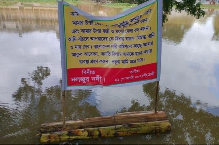 ‘আমি নলজুর নদী, আমি মরে যাচ্ছি, আমাকে বাঁচান। আমার ওপর থেকে অবৈধ স্থাপনা উচ্ছেদ করুন। আমার ওপর বর্জ্য ও ময়লা ফেলা বন্ধ করুন। আমি বাঁচলে আপনাদের বিশুদ্ধ বাতাস, বিশুদ্ধ পানি ও মাছ দেব।’