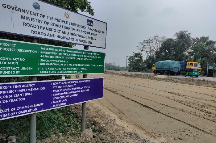 প্রকল্পের কাজের অগ্রগতি সম্পর্কে তিনি জানান, ঢাকা-সিলেট মহাসড়কে এই প্রকল্পের আওতায় ৬৬টি ব্রিজ নির্মাণ করা হচ্ছে। এরমধ্যে ৬০টি ব্রিজের কাজ চলমান রয়েছে। ৩০৫টি কালভার্ট নির্মাণ করা হবে।