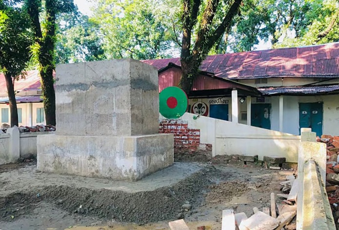 প্রায় ৬০ বছরের পুরোনো এ শহিদ মিনার ভেঙে সেখানে নির্মাণ করা হচ্ছে একটি স্মারকস্তম্ভ।