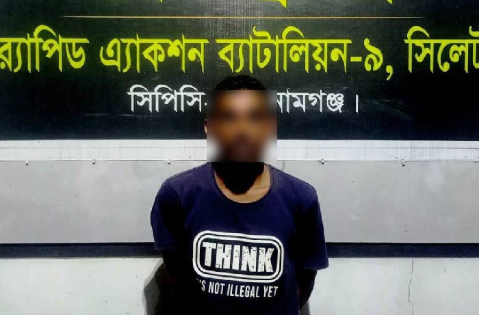র্যাব জানায়, গোপন সংবাদের ভিত্তিতে শনিবার (২৫ অক্টোবর) রাত সাড়ে ১২টার দিকে র্যাব-৯, সিপিসি-৩, সুনামগঞ্জ ক্যাম্পের একটি আভিযানিক দল সদর উপজেলার রঙ্গারচর ইউনিয়নের নৈগাং এলাকায় অভিযান চালিয়ে আসামি সুরমা ইউনিয়নের মৃত আরব আলীর পুত্র মহিন উদ্দিন (৩২)-কে গ্রেফতার করে।