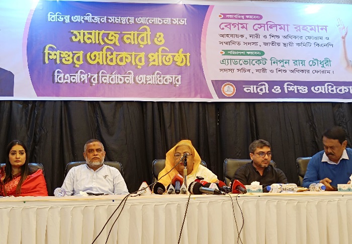 এরআগে বিএনপির স্থায়ী কমিটির সদস্য ও নারী ও শিশু অধিকার ফোরামের আহবায়ক বেগম সেলিমা রহমানের সভাপতিত্বে আলোচনা অনুষ্ঠানটি পরিচালনা করেন দলের কেন্দ্রীয় কমিটির সদস্য নিপুন রায় চৌধুরী।