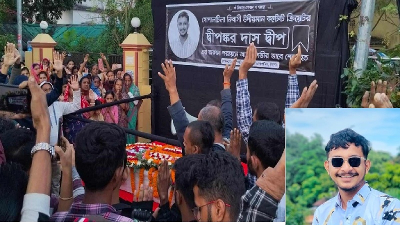 ঢাকা থেকে ভোরে গোপালটিলায় এসে পৌঁছে কনটেন্ট ক্রিয়েটর দিপঙ্কর দাস দ্বীপের মরদেহ। তার আগে থেকেই দ্বীপের বন্ধু-শুভানুধ্যায়ীদের অনেকে জড়ো হয়েছেন সিলেটে দ্বীপদের গোপালটিলার বাসার সামনে। রাতভর জেগেও অপেক্ষায় ছিলেন অনেকে। এলাকাবাসীর উদ্যোগে কালো কাপড় দিয়ে বানানো হয়েছিলো শ্রদ্ধা নিবেদনের মঞ্চ।