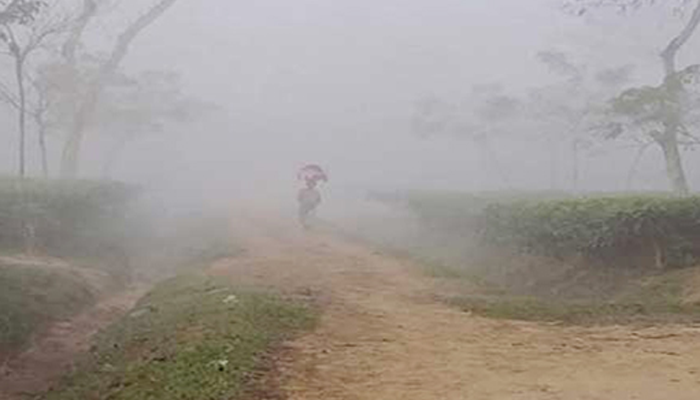 এর আগে কুয়াশার চাদরে ঢাকা ছিল শ্রীমঙ্গলের চা বাগান ও গ্রামাঞ্চল।
