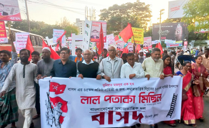 বাংলাদেশের সমাজতান্ত্রিক দল-বাসদ এর ৪৫তম প্রতিষ্ঠাবার্ষিকী এবং মহান রুশ সমাজতান্ত্রিক বিপ্লবের ১০৮তম বার্ষিকী উপলক্ষে শুক্রবার (২৮ নভেম্বর) বিকাল ৩টায় সিলেট কেন্দ্রীয় শহীদ মিনারে সমাবেশ ও লাল পতাকা মিছিল অনুষ্ঠিত হয়।