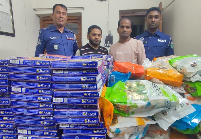 অভিযানে শুল্ক ফাঁকি দিয়ে অবৈধভাবে পণ্য বহন ও মজুদের অভিযোগে দুইজনকে আটক করা হয়েছে।