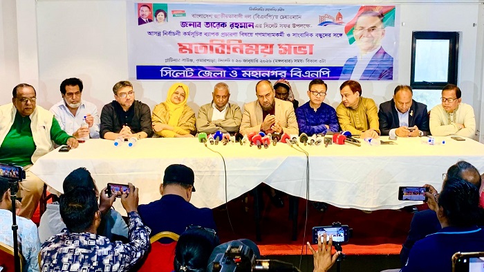 বাংলাদেশ জাতীয়তাবাদী দল (বিএনপি)’র চেয়ারম্যান তারেক রহমানের আসন্ন সিলেট সফর উপলক্ষে গৃহীত বিভিন্ন কর্মসূচির সার্বিক প্রস্তুতি এবং এসব কর্মসূচির ব্যাপক প্রচারণা কার্যক্রম সম্পর্কে গণমাধ্যমকর্মী ও সাংবাদিকদের অবহিত করার জন্যে সিলেট জেলা ও মহানগর বিএনপির উদ্যোগে এক মতবিনিময় সভা অনুষ্ঠিত হয়েছে।