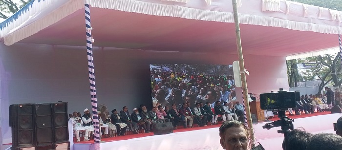 সিলেট জেলা বিএনপির সভাপতি আব্দুল কাইয়ুমের সভাপতিত্বে জনসভায় প্রধান অতিথি হিসেবে ভাষণ দেবেন দলের চেয়ারম্যান তারেক রহমান। কিছুক্ষণ আগে উপস্থিত হয়েছেন বিএনপির চেয়ারম্যান তারেক রহমান। সিলেট থেকেই বরাবরে মতো এবারও বিএনপি আনুষ্ঠানিক নির্বাচনি প্রচারণা শুরু করতে যাচ্ছে। মঞ্চে থাকা সব আসন একই ধরনের, আলাদা করে ভিআইপি বা বিশেষ কোনো চেয়ার রাখা হয়নি। বিএনপির চেয়ারম্যান তারেক রহমান নিজেও কোনো বিশেষ বা ভিআইপি আসনে বসছেন না। তাঁর জন্যও অন্যান্যদের মতোই সাধারণ চেয়ার রাখা হয়েছে।