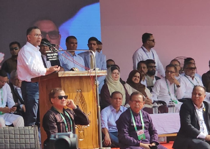 তিনি বলেন, “আমরা দেখেছি বিগত ১৫-১৬ বছরে উন্নয়নের নাম করে কীভাবে দেশের মানুষের সম্পদ লুটপাট করে বিদেশে পাচার করে দেওয়া হয়েছে। আজকে এই যে ঢাকা থেকে সিলেট বা সিলেট থেকে ঢাকার যে মহাসড়ক; ২০০৫ সালে আমি এসেছিলাম সুনামগঞ্জে, বন্যা হয়েছিল। আমার আসতে লেগেছিল সাড়ে ৪ ঘণ্টার মতন। কিন্তু আজ আজ আমরা দেখি ১০ ঘণ্টার মতন লাগে। সিলেটের এই পূণ্যভূমির মানুষ বহু মানুষ আছেন, যারা লন্ডনে যাতায়াত করেন; লন্ডন যেতেও এত সময় লাগে না- এই হচ্ছে উন্নয়নের ফিরিস্তি।