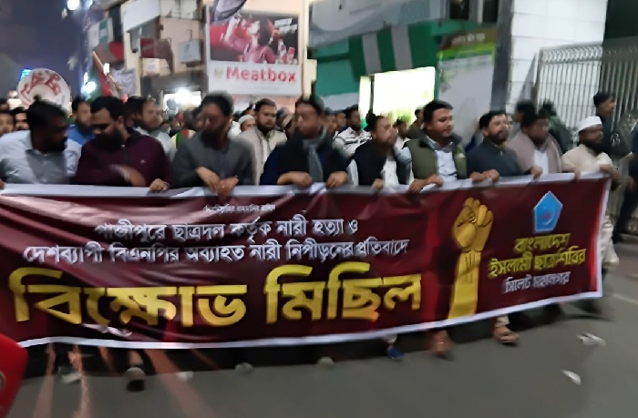 রবিবার রাত ৮ টায় সিলেট মহানগর ছাত্রশিবির আয়োজিত “গাজীপুরে ছাত্রদল কতৃক নারী হত্যা ও দেশব্যাপী বিএনপির অব্যহত নারী নিপীড়নের” অভিযোগে বিক্ষোভ মিছিল পরবর্তী সমাবেশে একথা বলেন তিনি।