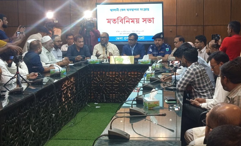 সমস্যা সমাধানে দুপুরে সিলেট জেলা প্রশাসকের কার্যালয়ে জ্বালানি তেল ব্যবস্থাপনা সংক্রান্ত বৈঠক অনুষ্ঠিত হয়। জেলা প্রশাসক মো. সারওয়ার আলমের সভাপতিত্বে সিলেট সিটি করপোরেশনের প্রশাসক আব্দুল কাইয়ুম চৌধুরী, সিলেটের পুলিশ সুপার (এসপি) ড. যাবের সাদেক, মহানগর বিএনপির সভাপতি রেজাউল হাসান কয়েস লোদী, সাধারণ সম্পাদক এমদাদ হোসেন চৌধুরীসহ রজৈনৈতিক নেতা ও প্রশাসনের কর্মকর্তারা অংশ নেন। বৈঠকে পেট্রোল পাম্প মালিক সংগঠনগুলোর শীর্ষ নেতারাও উপস্থিত ছিলেন।