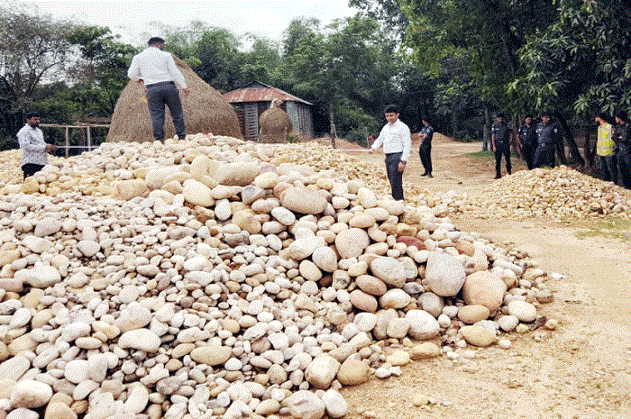 বৃহস্পতিবার জালানি ও খনিজসম্পদ বিভাগের নির্বাহী ম্যাজিস্ট্রেট সৈকত রায়হানের নেতৃত্বে অভিযান চালিয়ে এই পাথর জব্দ করা হয়। পরে এগুলো স্থানীয় চেয়ারম্যান ও মেম্বারের জিম্মায় রাখা হয়েছে।
