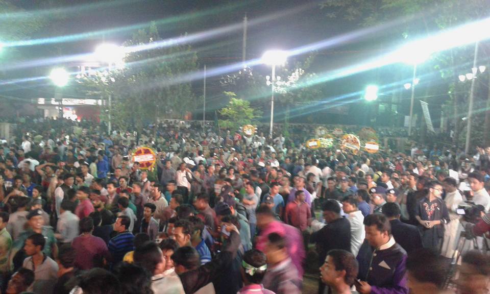 রাত ১১ টা বাজতেই সিলেট কেন্দ্রীয় শহীদ মিনার এলাকা লোকে লোকারণ্য। ভাষার জন্য প্রাণ দেওয়া বীর শহীদদের শ্রদ্ধা জানাতে নানা শ্রেণী পেশার মানুষ হাজির শহীদ মিনারে।