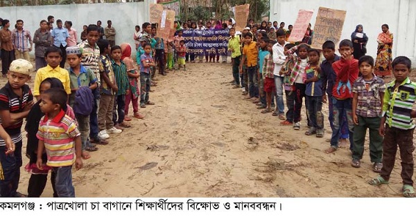 বৃহস্পতিবার (২৫ ফেব্রুয়ারি) সকাল ৮টায় উপজেলার মাধবপুর ইউনিয়নের পাত্রখোলা চা বাগানে শিক্ষার্থীরা মানববন্ধন করে।