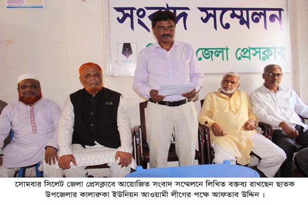 সোমবার সিলেট জেলা প্রেসক্লাবে আয়োজিত সংবাদ সম্মেলনে এসব বক্তব্য তুলে ধরা হয়। কালারুকা ইউনিয়ন আওয়ামী লীগের উদ্যোগে এ সংবাদ সম্মেলনের আয়োজন করা হয়। সংবাদ সম্মেলনে লিখিত বক্তব্য পাঠ করেন ইউনিয়ন আওয়ামী লীগের সভাপতি আফতাব উদ্দিন।