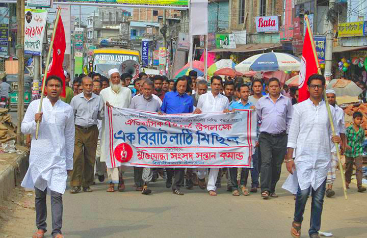 সোমবার (৭ মার্চ) দুপুরে পৌরশহরে এ লাঠি মিছিল করা হয়।