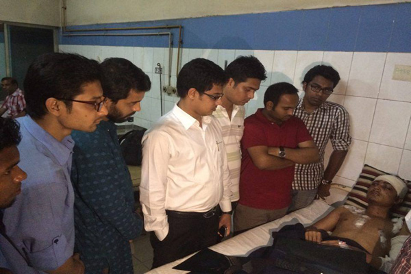 সিলেট এমসি কলেজে আধিপত্য বিস্তার নিয়ে গত সোমবার দুপুরে ছাত্রলীগের দু’পক্ষের মধ্যে সংঘর্ষে গুলিবিদ্ধ খায়রুল ইসলাম শাহীনকে হাসপাতালে দেখে এসেছেন ছাত্রলীগের কেন্দ্রীয় সাধারণ সম্পাদক এস এম জাকির হোসাইন।