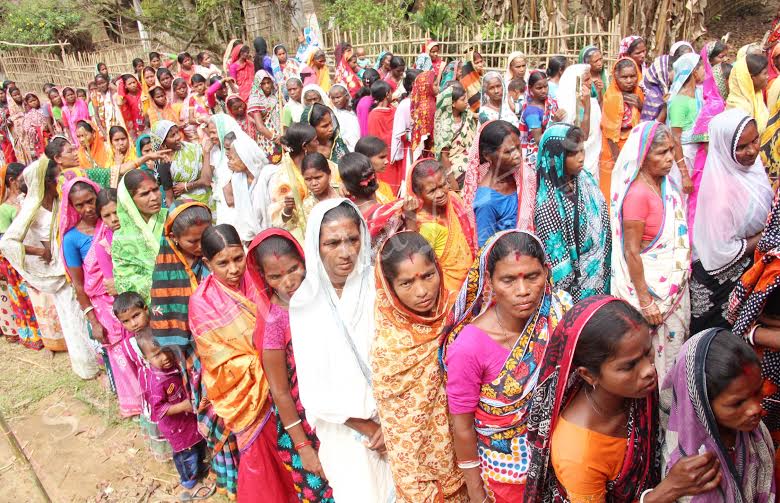ভোটারদের দীর্ঘ লাইন। এরা সবাই চা বাগানের শ্রমিক। নির্বাচনীয় এলাকায় সাধারণ ছুটি বলে আজ কাজ নেই। পুরো ওয়ার্ড জুড়ে উৎসব মুখর পরিবেশ।