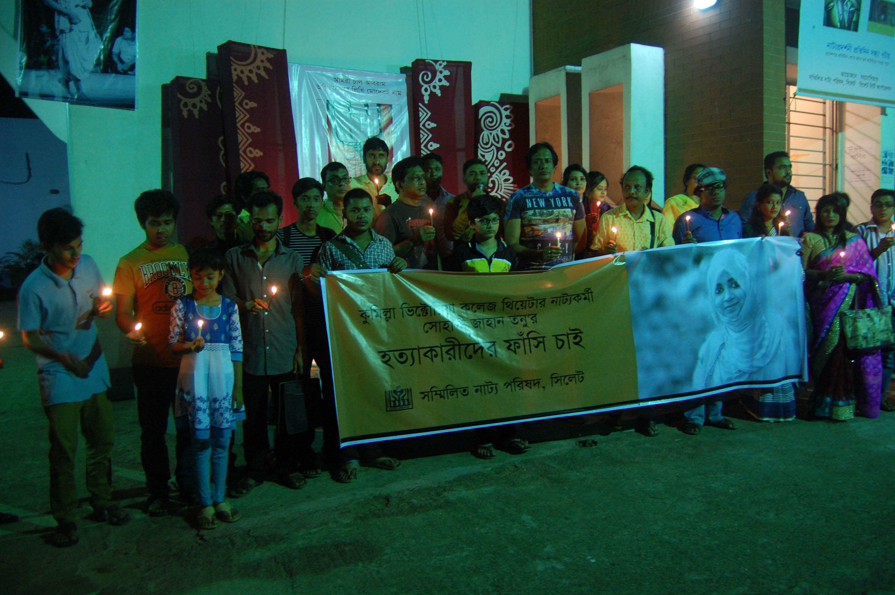 কুমিল্লার ওলিপুর এলাকায় ভিক্টোরিয়া কলেজের ইতিহাস বিভাগের মেধাবী ছাত্রী ভিক্টোরিয়া কলেজ থিয়েটারের নাট্যকর্মী সোহাগী জাহান তনুর নির্মম হত্যাকান্ডের বিচার চাইল সম্মিলিত নাট্য পরিষদ সিলেট।