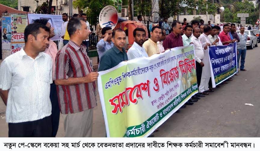 সমাবেশে ক্ষোভ জানিয়ে শিক্ষক নেতৃবৃন্দ বলেন, মাননীয় শিক্ষামন্ত্রী ও সরকারের পদস্থ ব্যক্তিবর্গের একাধিকবার ঘোষণা স্বত্ত্বেও এখনো এমপিওভুক্ত শিক্ষক কর্মচারীরা নতুন পে স্কেলে বেতন ভাত পান নি।