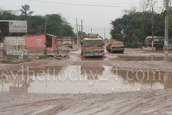 নামেই সড়ক। শুস্ক মৌসুমে ধুলোময়, বর্ষায় কাঁদাজলে একাকার। প্রতিদিন সড়কটিতে চলাচল করে কয়েক হাজার পাথরবাহী ট্রাক, বাস, পিকআপ, অটোরিক্সা সহ অন্যান্য যানবাহন। পুরো সড়কটির পিচ অনেক আগেই নষ্ট হয়ে গেছে। পিচ উঠে পরায় বিধ্বস্ত এই সড়কপথে পারতপক্ষে যেতে চায় না কোন যানবাহন। নিতান্তই বাধ্যহয়ে যারা চলাচল করেন তাদের দুর্ভোগের যেন শেষ নেই।