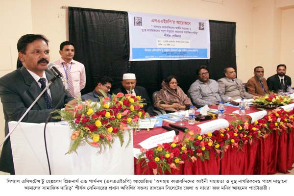 এলএএইচপি’র ভাইস চেয়ারম্যান ব্যারিস্টার এনামুল কবির ইমনের সভাপতিত্বে এবং সমন্বয়ক শাহনেওয়াজ আহমদ ও অঞ্জন করের পরিচালনায় সেমিনারে বিশেষ অতিথির বক্তব্য দেন, মহানগার দায়রা জজ মো. আকবর হোসেন মৃধা, জেলা ও দায়রা জজ আদালতরে বিচারক ফাহমিদা খাতুন, জাতীয় আইনগত সহায়তা কেন্দ্রের উপ পরিচালক রাকিবুল ইসলাম, সিলেটের সিনিয়র জেল সুপার ছগির মিয়া, জেলা বারের সভাপতি একেএম সামিউল আলম, সিলেট কোর্টের জিপি খাদেমুল মিল্লাত মো. জালাল।
