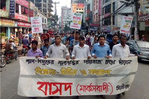 গ্যাস ও বিদ্যুতের অস্বাভাবিক মূল্যবৃদ্ধির প্রস্তাবের প্রতিবাদে বাসদ ( মার্কসবাদী) সিলেট জেলা বুধবার ৪ টায় বিক্ষোভ মিছিল ও সমাবেশ করে। মিছিলটি সিটি পয়েন্ট থেকে শুরু হয়ে আম্বরখানা পয়েন্টে গিয়ে শেষ হয় ।