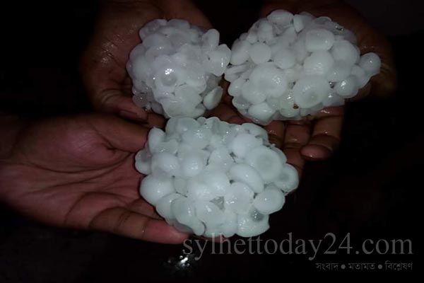 সিলেট নগরী ও আশপাশের এলাকাতে আবারও প্রচণ্ড শিলাবৃষ্টি হয়েছে।