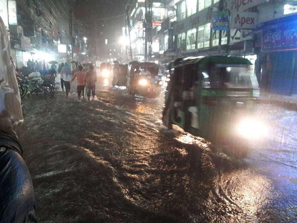 রাত ১০ টায় এ রিপোর্ট লেখার সময়ও বৃষ্টি অব্যাহত আছে। এতে জলে ডুবে আছে নগরীর বেশিরভাগ সড়ক।