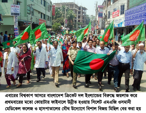ইংলিশ বধের প্রায় ২৪ ঘন্টা পেরোতে শুরু করেছে। তবু এখনো সিলেটজুড়ে বিরাজ করছে আগেরদিনের জয়ের রেশ। সর্বত্রই একই আলোচনা। কেমন করে স্বপ্নপুরণ করলো টাইগাররা। মাশরাফি, রুবেল, মাহমুদুল্লাহ, মুশফিকদের কৃতিগাথা সকলের মুখে মুখে।