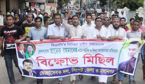 কেন্দ্রীয় কর্মসূচীর অংশ হিসাবে সিলেট জেলা ও মহানগর স্বেচ্ছাসেবক দলের উদ্যোগে অনুষ্ঠিত বিক্ষোভ মিছিলটি দরগা গেইট থেকে শুরু হয়ে রিকাবীবাজার পয়েন্টে গিয়ে শেষ হয়। সভায় সভাপতিত্ব করেন সিলেট মহানগর স্বেচ্ছাসেবকদলের আহবায়ক কাউন্সিলর ফরহাদ চৌধুরী শামীম। জেলা স্বেচ্ছাসেবকদলের যুগ্ম আহবায়ক জাকির হোসেনের পরিচালনায় অনুষ্ঠিত বিক্ষোভ সমাবেশে বক্তব্য রাখেন ছাত্রদল কেন্দ্রীয় সংসদের সাবেক সহ-সভাপতি বিএনপি নেতা আব্দুল আহাদ খান জামাল, জেলা স্বেচ্ছাসেবকদলের যুগ্ম আহবায়ক মওদুদুল হক মওদুদ।