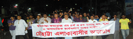 নগরীর চৌহাট্টায় মুক্তিযোদ্ধা কমপ্লেক্সে অবৈধ কার্যক্রলাপকে কেন্দ্র করে সড়ক অবরোধ, মানববন্ধন ও বিক্ষোভ মিছিল করেছে স্থানীয় নিলয় সমাজ কল্যান সংস্থার নেতাকর্মীরা। পরে শুক্রবার রাতে খবর পেয়ে পুলিশ ঘটনাস্থল পরিদর্শন করে ও বেশ কয়েক প্রকার দেশী-বিদেশী মদের বোতল ও জুয়ার সরঞ্জাম উদ্ধার করে।