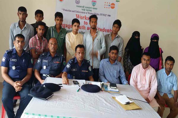 কর্মশালায় অন্যান্যের মধ্যে বক্তব্য রাখেন গোয়ালাবাজার আদর্শ মহিলা কলেজের শিক্ষার্থী হেবী বেগম, তাজপুর ডিগ্রী কলেজের শিক্ষার্থী তুরন মিয়া প্রমুখ। কর্মশালায় তাজপুর ও গোয়ালাবাজার মহিলা কলেজের অর্ধশত শিক্ষার্থীরা অংশ গ্রহণ করে। ইভটিজিং এর প্রতিবাদ ও ইভটিজারকে সনাক্ত করে আইন প্রয়োগকারী সংস্থার নিকট সোপর্দসহ শিক্ষার্থীদের প্রতি আহ্বান জানান বক্তারা।