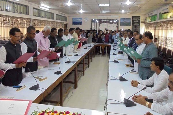 সুনামগঞ্জের তিন উপজেলার ১৮টি ইউনিয়ন পরিষদের নির্বাচিত চেয়ারম্যানরা শপথ নিয়েছেন। মঙ্গলবার বেলা সাড়ে তিনটায় জেলা প্রশাসকের সম্মেলন কক্ষে নির্বাচিত চেয়ারম্যানদের শপথ পাঠ করান জেলা প্রশাসক শেখ রফিকুল ইসলাম।