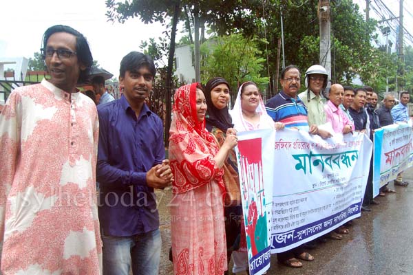 সুজন সিলেট চ্যাপ্টারের সভাপতি ফারুক মাহমুদ চৌধুরী সভাপতিত্বে আয়োজিত মানববন্ধনে অন্যান্যদের মধ্যে উপস্থিত ছিলেন-সুজন সিলেট চ্যাপ্টারের সেক্রেটারী সৈয়দ জিয়াউস শামস, শাহজালাল বিজ্ঞান ও প্রযুক্তি বিশ্ববিদ্যালয়ের সহযোগি অধ্যাপক তাহমিনা ইসলাম, ওয়ার্কার্স পার্টির সাধারণ সম্পাদক কমরেড সিকন্দর আলী, সিলেট প্রেসক্লাবের সাবেক সাধারণ সম্পাদক মোহাম্মদ সিরাজুল ইসলাম, ইকডো এর নির্বাহী পরিচালক লক্ষিকান্ত সিংহ, ব্রাক সিলেটের সম্মন্বয়কারী বিভাষ তরফদার, বাংলাদেশ মহিলা আইনজীবী সমিতি এডভোকেট জাকিয়া জালাল, সম্মিলিত সাংস্কৃতিক জোটের সৈয়দ মনির হেলাল, গণজাগরণ মঞ্চের কবি আবিদ ফয়সল, সিলেট ছাত্র যুবকল্যাণ ফেডারেশন এর চেয়ারম্যান এইচ এম আবদুর রহমান, সাংবাদিক দেলোয়ার হোসেন জিলন, বিশ্বনাথ থানা সমিতি সিলেটের সেক্রেটারী শেখ মোহাম্মদ আজাদ, বিশ্বানাথ বার্তা সম্পাদক মোসাদ্দেক হোসেন সাজুল, মানবধিকার কর্মী এডভোকেট ফাতেমা সুলতানা, সিলেট বুদ্ধ সমিতি রামেন্দ্র কুমার বড়–য়া, ইয়ং এন্ডিং হ্যাঙ্গার সিলেটের ফ্রাসিলিটেটর কামাল আহমদ গাজী, প্রমুখ।