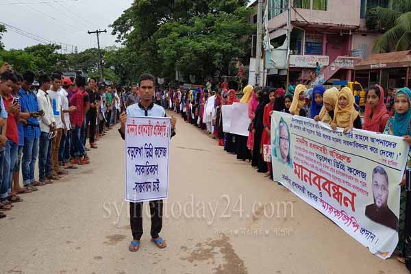 মৌলভীবাজারের বড়লেখার প্রাচীনতম শিক্ষা প্রতিষ্ঠান বড়লেখা ডিগ্রি কলেজ সরকারীকরণের দাবিতে উপজেলা সদরে মানববন্ধন অনুষ্ঠিত হয়েছে।