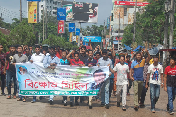 সিসিক মেয়র আরিফুল হক চৌধুরীর বিরুদ্ধে আওয়ামীলীগের উপদেষ্টা মণ্ডলীর সদস্য সুরঞ্জিত সেনগুপ্ত উপর সুনামগঞ্জে গ্রেনেড হামলার মামলায় নতুন করে নাম অন্তর্ভুক্ত করার প্রতিবাদে বন্দরবাজার পয়েন্টে মিছিল পরবর্তী সংক্ষিপ্ত সমাবেশের আয়োজন করা হয়।