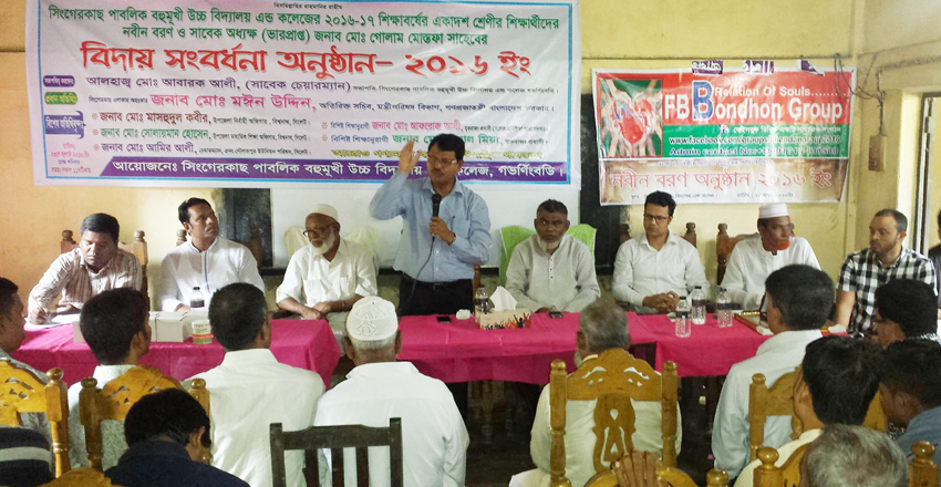 শিক্ষানুরাগী সদস্য হাফিজ আরব খানের উপস্থাপনায় অনুষ্ঠানে সংবর্ধিত অতিথির বক্তব্য রাখেন সিংগেরকাছ উচ্চ বিদ্যালয় এন্ড কলেজের ভারপ্রাপ্ত বিদায়ী অধ্যক্ষ গোলাম মোস্তফা। শুরুতে স্বাগত বক্তব্য রাখেন বিদ্যালয়ের সহকারী শিক্ষক মো: আক্তারুজ্জামান।