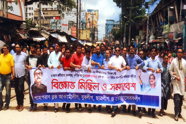 দেশব্যাপী সন্ত্রাস-জঙ্গিবাদের বিরুদ্ধে ও সন্ত্রাস-জঙ্গিবাদের মদদদাতা, দুর্নীতির বরপুত্র তারেক রহমানকে দ্রুত দেশে ফিরিয়ে এনে শাস্তি কার্যকরের দাবীতে মঙ্গলবার (২৬ জুলাই) দুপুরে শাহ পরান ব্লক আওয়ামীলীগ, যুবলীগ, ছাত্রলীগ ও স্বেচ্ছাসেবকলীগের উদ্যোগে এক বিক্ষোভ মিছিল ও সমাবেশ অনুষ্ঠিত হয়।