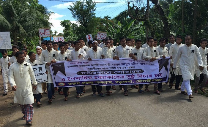 মৌলভীবাজারের বড়লেখার চান্দগ্রামে দুর্বৃত্তের হাতে খুন হওয়া ব্যবসায়ী আব্দুল মজিদ ছাদ উদ্দিনের হত্যাকারীদের দ্রুত গ্রেপ্তার ও বিচারের দাবিতে প্রতিবাদ সভা ও বিক্ষোভ মিছিল অনুষ্ঠিত হয়েছে।