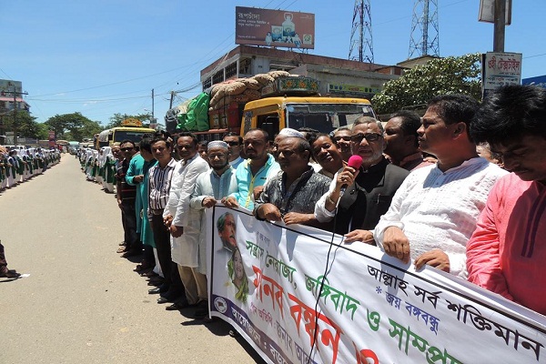 মানববন্ধনে উপজেলা আওয়ামী লীগের সাংগঠনিক আব্দুল লতিফের সঞ্চালনায় প্রধান অতিথির বক্তব্য রাখেন জাতীয় সংসদের হুইপ মো. শাহাব উদ্দিন এমপি।