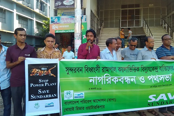 সুন্দরবন ধ্বংস করে রামপাল কয়লাভিত্তিক বিদ্যুতকেন্দ্র বাতিলের দাবিতে বাংলাদেশ পরিবেশ আন্দোলন (বাপা) ও খোয়াই রিভার ওয়াটারকিপার নাগরিকবন্ধন ও পথসভা করেছে।
