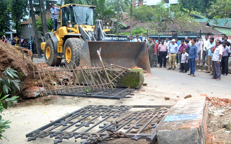 বুধবার (১৭ আগস্ট) বেলা ১২ টায় সিলেট সিটি কর্পোরেশনের নির্বাহী ম্যাজিস্টেট মোঃ শরিফুজ্জামান নেতৃত্বে আইন মোতাবেক জমির দখল নিতে সেখানে উপস্থিত হয় সিলেট সিটি কর্পোরেশনের বিশেষ টিম। এসময় উপস্থিত ছিলেন সিলেট সিটি কর্পোরেশনের প্রধান নির্বাহী কর্মকর্তা এনামুল হাবীব, ২ নম্বর ওয়ার্ডের কাউন্সিলর রাজিক মিয়া, ৩ নং ওয়ার্ডের কাউন্সিলর এস এম আবজাদ হোসেন, ২০ নম্বর ওয়ার্ডের কাউন্সিলর আজাদুর রহমান আজাদ, সিটি কর্পোরেশনের প্রধান প্রকৌশলী (ভারপ্রাপ্ত) নুর আজিজুর রহমান, নির্বাহী প্রকৌশলী আলী আকবর ও শামসুল হক, সহকারী প্রকৌশলী (বিদ্যুৎ) রুহুল আলম, কর কর্মকর্তা (চলতি দায়িত্ব) আবদুল আজিজ, এ্যাসেসর চন্দন দাশ, সহকারী প্রকৌশলী অরবিন্দ দেব ও আবদুস সোবহান, উপ সহকারী প্রকৌশলী জুবেদ আলম ও তানভীর আহমেদ তামিমসহ সংশ্লিষ্ট কর্মকর্তাবৃন্দ। এছাড়াও ইন্সপেক্টর রেজাউল ইসলামের নেতৃত্বে মেট্রোপলিটন পুলিশ ফোর্স উপস্থিত ছিল।