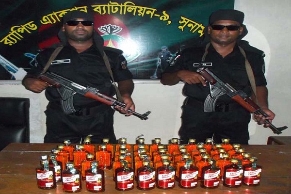 র্যাবের জানায়, সুনামগঞ্জ ক্যাম্পের একটি আভিযানিক দল গোপন সংবাদের ভিত্তিতে অতিরিক্ত পুলিশ সুপার কাজী মনিরুজ্জামান এর নেতৃত্বে সুনামগঞ্জ জেলার সদর থানা এলাকায় অভিযান পরিচালনা করে। অভিযানে ইসলামপুর গ্রামের জনৈক মোঃ নবীর বাড়ীর উত্তর পাশেরনদীর পাড়ে বাঁশঝাড়ের ভিতরে অজ্ঞাত কিছু লোক মদ বেচাকেনা করার সময় র্যাবের উপস্থিতি টের পেয়ে পালিয়ে যায়। ঘটনাস্থল থেকে ৪৮ (আটচল্লিশ) বোতল ভারতীয় অফিসার্স চয়েস উদ্ধার করে র্যাব।