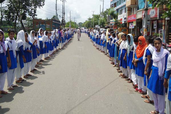 কুলাউড়া বালিকা উচ্চ বিদ্যালয়ের ৯ম শ্রেণির ছাত্রী উম্মে হাবিবা সুচি’র উপর হামলা ও ঘটনার সাথে জড়িতদের গ্রেফতার ও শাস্তির দাবিতে মঙ্গলবার বিদ্যালয়ের শিক্ষার্থীরা এক মানবন্ধন কর্মসূচি পালন করে। সকাল ১১ টায় বিদ্যালয়ের সম্মুখে এ্ই মানববন্ধন কর্মসুচি পালিত হয়। এতে বিদ্যালয়ের শিক্ষক ও শিক্ষিকাগণ একাত্মতা পোষণ করেন।
