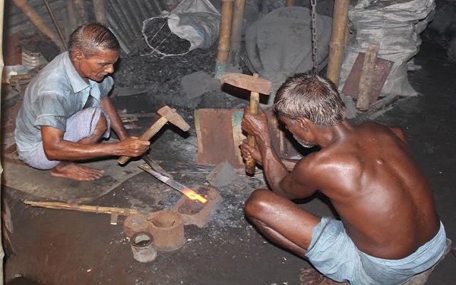 পবিত্র ঈদুল আযহা উপলক্ষে ব্যস্ত সময় পার করছেন মৌলভীবাজার জেলার শ্রীমঙ্গল উপজেলার কামার শিল্পের লোকজন। প্রচণ্ড গরমের মধ্যে ও দোকানে জ্বলছে আগুন। সেই আগুণের তাপে শরীর থেকে ঝরছে অবিরাম ঘাম। মুখে প্রচণ্ড ক্লান্তির চাপ। তার পরেও প্রতিদিন সকাল থেকে সন্ধ্যা পর্যন্ত চলছে তাদের কাজের ব্যস্ততা।