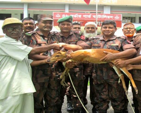 পরে খবর পেয়ে কাঁঠালকান্দি বিজিবি সীমান্ত ফাঁড়ির কমান্ডার মো. মালেক ও হাবিলদার বায়রন দ্রুত অভিযান চালিয়ে আহত অবস্থায় হরিণ শাবকটিকে উদ্ধার করেন। বিজিবির উপস্থিতি টের পেয়ে এ সময় দুর্বৃত্তরা পালিয়ে যায়। পরে বিজিবি হরিণ শাবকটিকে বন্যপ্রাণী সেবা ফাউন্ডেশনে হস্তান্তর করে।
