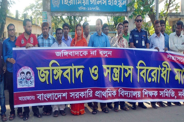 ‘জঙ্গিবাদকে না বলুন,সন্ত্রাসকে ঘৃণা করুন’ এ স্লোগানকে সামনে রেখে নবীগঞ্জে প্রাথমিক শিক্ষক সমিতির আয়োজনে জঙ্গিবাদ ও সন্ত্রাসবাদ বিরোধী বিশাল মানববন্ধন অনুষ্ঠিত হয়েছে।