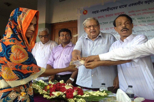 অনুষ্ঠানে অসহায় সম্বলহীনের মধ্যে অনুদান প্রদান করেন অতিথিবৃন্দ।