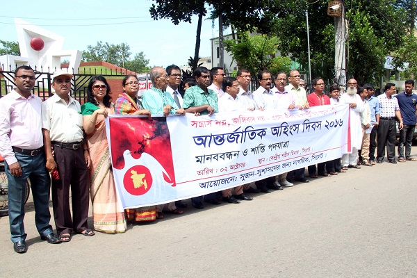 ‘সংঘাত নয়, জঙ্গিবাদ নয়- এসো ঐক্য ও সম্প্রীতির স্বদেশ গড়ি’ শ্লোগানে আজ (২ অক্টোবর) বিশ্বব্যাপী পালিত হচ্ছে আন্তর্জাতিক অহিংস দিবস-২০১৬। দিবসটি পালন উপলক্ষে সিলেটে মানববন্ধন ও সমাবেশ করেছে সুশাসনের জন্য নাগরিক (সুজন), সিলেট।